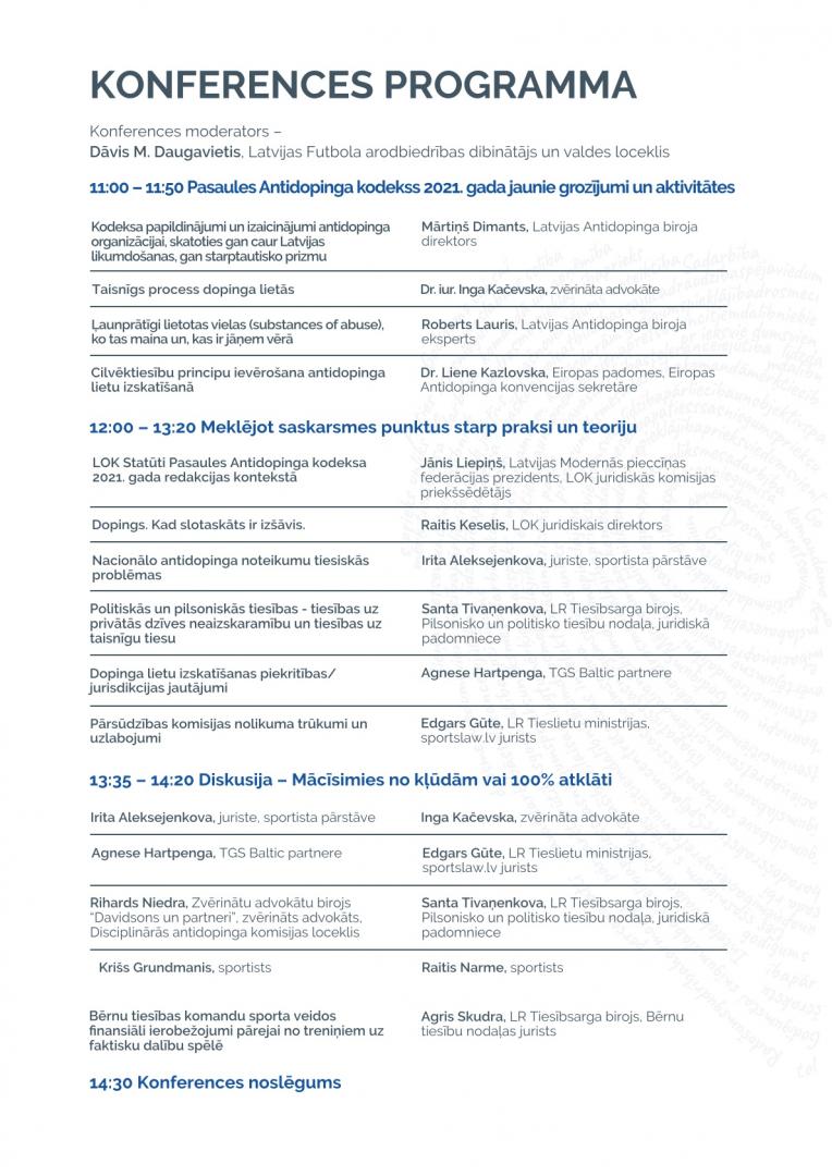 Pirmajā Antidopinga konferencē (2019. gads) aicinājām diskutēt par jautājumiem un aktualitātēm plašākā skatījumā - par antidopinga sistēmu, sportu, sabiedrības vērtībām un citiem dzīves aspektiem, lai turpmāk vairotu sabiedrības informētību un veicinātu iesaistīto pušu izpratni par savstarpējās sadarbības nozīmību.
